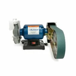 The front contact wheel can be used for smooth controlled grinding, contouring, or internal finishing. The large 7 inch disc sander on the side offers plenty of surface area to work with for beveling, deburring, squaring and general sanding. Multitool Attachments fit almost any bench grinder with a 1/2 or 5/8 shaft.