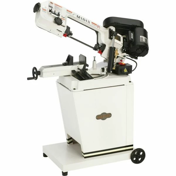 A bandsaw is a must for any metal shop. The M1013 has three speeds, an automatic shut-off, ball-bearing blade guides, and many more important performance features. As an added bonus, it has a swiveling headstock, so there is no fussing with establishing the cut angle at the vise! Just set the workpiece length, swivel the headstock to an angle between -45Β° to +60Β°, and make the cut.